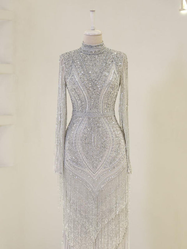 Ürün tam kalıptır Ürün boyu ortalama 165 cm Kuyrukludur Arkadan fermuarlıdır İşlemeli esnek kumaştır Hakim yakadır Astarlıdır Balık etek formuna sahiptir Kol kısmı transparandır NOT: İstek üzerine transparan kol kısmı...